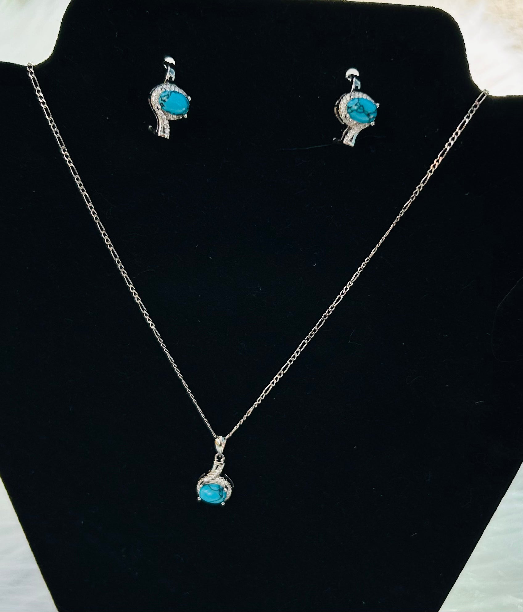 Turquoise Stone Set (Sterling Silver and Real Turquoise Stones)